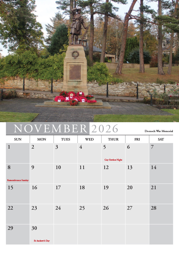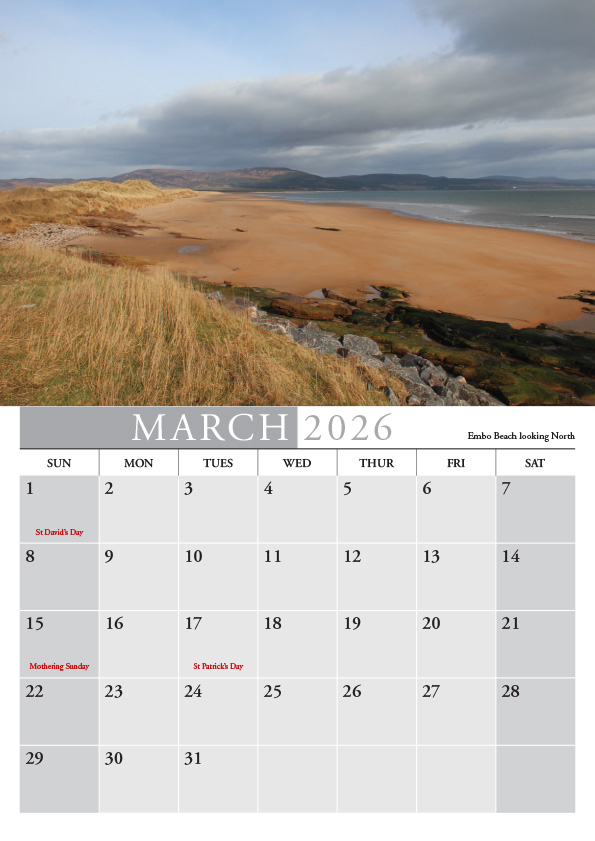 2026 East Sutherland Calendar