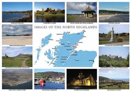 A 1000 piece puzzle, with 12 images around the edge of places from across East Sutherland. A map in the middle shows with red dots the places shown around the edge of the puzzle.